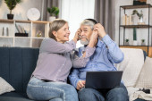 Zdjęcie "Starszy, dojrzały mężczyzna pomaga jej kobiecie z bólem głowy, stresem, bólem. Staruszek odczuwa silne bóle. Żona wspierająca męża - para w podeszłym wieku cierpiąca na depresję migrenową. siedząc w domu w domu" może być wykorzystywane do celów osobistych i komercyjnych zgodnie z warunkami zakupionej licencji Royalty-free. Obraz jest dostępny do pobrania w jakości wysokiej rozdzielczości do 5760x3840.