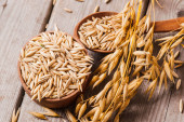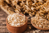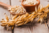 Zdjęcie "Zdrowy świeży suchy owsiany mączka .Owsiany uszy ziarno na drewniany stół, owsianka. Zbiory odłowu. " może być wykorzystywane do celów osobistych i komercyjnych zgodnie z warunkami zakupionej licencji Royalty-free. Obraz jest dostępny do pobrania w jakości wysokiej rozdzielczości do 5760x3840.