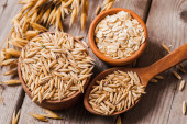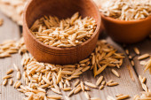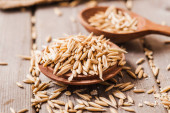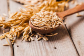 Zdjęcie "Zdrowy świeży suchy owsiany mączka .Owsiany uszy ziarno na drewniany stół, owsianka. Zbiory odłowu. " może być wykorzystywane do celów osobistych i komercyjnych zgodnie z warunkami zakupionej licencji Royalty-free. Obraz jest dostępny do pobrania w jakości wysokiej rozdzielczości do 5760x3840.