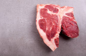 surowe mięso pokrojone tłustym stekiem z t-bone w sklepie mięsnym na kamieniu