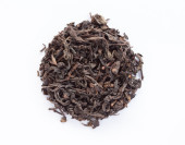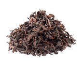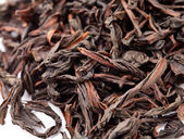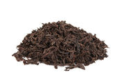 liść czarnej herbaty sterty w misce przezroczystego szkła, na białym tle