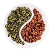 czarny kakao i kawa w yin yang w kształcie płyty, iso