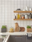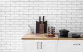 Zestaw czystych zastaw stołowych w kuchni