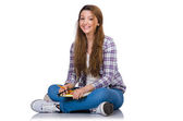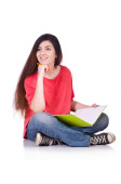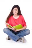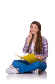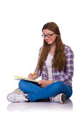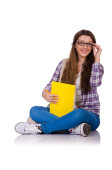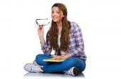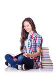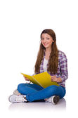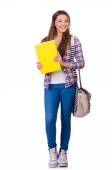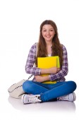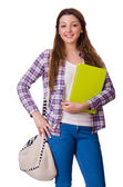 Młody student z książkami odizolowanymi na białym