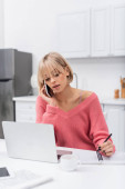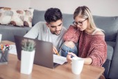 młoda międzyrasowa para pracuje z domu w pobliżu urządzeń na stole
