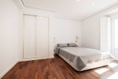 Zdjęcie "Salon z drewnianym stołem z żeliwną nóżką, białe drewniane krzesła, balkon z czarnym metalowym balustradą i widokiem na dachy miasta" może być wykorzystywane do celów osobistych i komercyjnych zgodnie z warunkami zakupionej licencji Royalty-free. Obraz jest dostępny do pobrania w jakości wysokiej rozdzielczości do 5760x3840.
