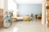 Zdjęcie "Wnętrze dziecięcej sypialni z nowoczesnym miejscem pracy i rowerem" może być wykorzystywane do celów osobistych i komercyjnych zgodnie z warunkami zakupionej licencji Royalty-free. Obraz jest dostępny do pobrania w jakości wysokiej rozdzielczości do 5760x3840.