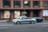 Ukraina, Kijów - 2 sierpnia 2021: Szary Toyota RAV 4 samochód poruszający się po ulicy. Artykuł