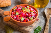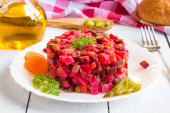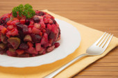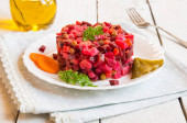 surowy czerwony kapusta z przyprawami i warzywami na białym talerzu