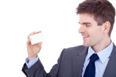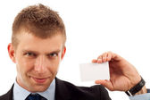 człowiek biznesu gospodarstwa puste karty biznesowe