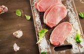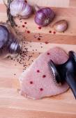 Surowe wieprzowe sznycel z tenderizer mięso na deska