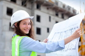Architect working outdoors on a construction