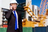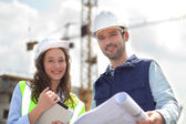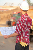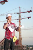 Architect working outdoors on a construction