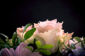 Zbliżenie delikatne światło różowe róże na czarnym tle