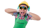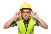 Pracownik przemysłowy odizolowany na białym tle