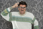 szczęśliwy gest ok telefon człowiek retro ręka znak