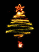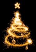 árbol de Navidad hecho por luces de Bengala en un negro