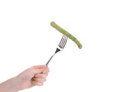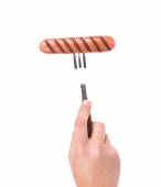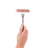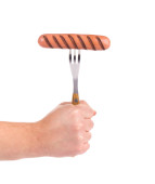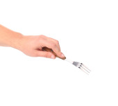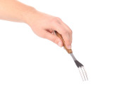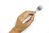 ręką człowieka z widelcem