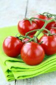 Wiśniowe pomidory świeże dojrzałe na ręcznik kuchenny