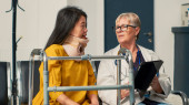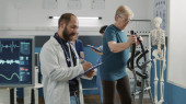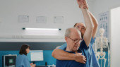 Stary pacjent z zaburzeniami mechanicznymi uczestniczący w fizjoterapii
