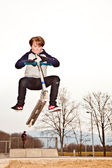 Zdjęcie "chłopak cieszy jazda skuterem i skoki" może być wykorzystywane do celów osobistych i komercyjnych zgodnie z warunkami zakupionej licencji Royalty-free. Obraz jest dostępny do pobrania w jakości wysokiej rozdzielczości do 5760x3840.