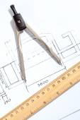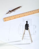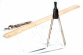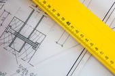 Drewniane reguły na rysunku wykonanego na papierze