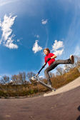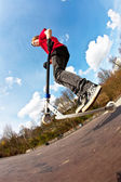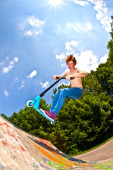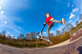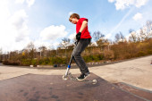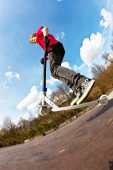Zdjęcie "Boy with scooter is going airborne" może być wykorzystywane do celów osobistych i komercyjnych zgodnie z warunkami zakupionej licencji Royalty-free. Obraz jest dostępny do pobrania w jakości wysokiej rozdzielczości do 5760x3840.