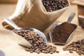 Martwa natura z ziaren kawy w jutowego worka