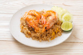 domowe smażone krewetki smażony ryż na talerzu w stylu tajskim - azjatycki styl żywności