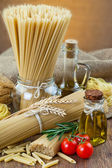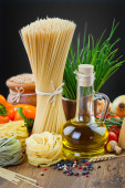 makaron na stole i składniki z warzyw