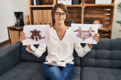 młoda blondynka psycholog mając rorscharch test w centrum psychologii