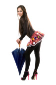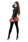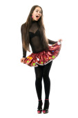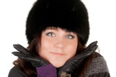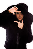 portret uśmiechający się młoda brunetka w rękawice z pazurami