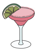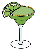 Classic Margarita cocktail with a rainbow LGBT equality flag colors salt rim. For gay bar diversity pride party invitations, cards or stickers. Doodle cartoon illustration isolated on white
