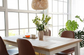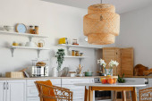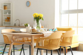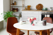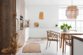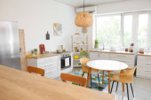 Zdjęcie "Stół z krzesłami w nowoczesnym wnętrzu kuchni" może być wykorzystywane do celów osobistych i komercyjnych zgodnie z warunkami zakupionej licencji Royalty-free. Obraz jest dostępny do pobrania w jakości wysokiej rozdzielczości do 5760x3840.