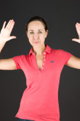 Model skrzyżowane znak stop obiema rękami