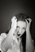 Zdjęcie "Model zestresowany i wyciągając włosy" może być wykorzystywane do celów osobistych i komercyjnych zgodnie z warunkami zakupionej licencji Royalty-free. Obraz jest dostępny do pobrania w jakości wysokiej rozdzielczości do 5760x3840.