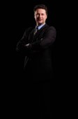 zbliżenie uśmiechający się starszy mężczyzna na białym tle na czarnym tle