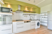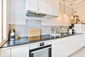 Zdjęcie "Wnętrze kuchni w kolorach białym" może być wykorzystywane do celów osobistych i komercyjnych zgodnie z warunkami zakupionej licencji Royalty-free. Obraz jest dostępny do pobrania w jakości wysokiej rozdzielczości do 5760x3840.
