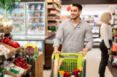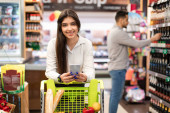 Zdjęcie "Bliskowschodni kupujący kobieta robi zakupy wybierając artykuły spożywcze w supermarkecie" może być wykorzystywane do celów osobistych i komercyjnych zgodnie z warunkami zakupionej licencji Royalty-free. Obraz jest dostępny do pobrania w jakości wysokiej rozdzielczości do 5760x3840.