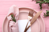 Zdjęcie "Eleganckie ustawienie stołu na zielonym tle, zbliżenie" może być wykorzystywane do celów osobistych i komercyjnych zgodnie z warunkami zakupionej licencji Royalty-free. Obraz jest dostępny do pobrania w jakości wysokiej rozdzielczości do 5760x3840.