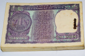 Stary rupii notatki połączone na stole, Indie pieniądze na obracającym się stole. Stare indyjskie banknoty walutowe na stole obrotowym, waluta indyjska na stole