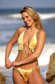 Modelka w bikini pokazuje on Off