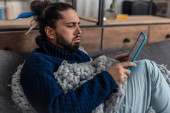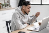 Zdjęcie "Chory człowiek siedzi przy laptopie i rozmawia z lekarzem online." może być wykorzystywane do celów osobistych i komercyjnych zgodnie z warunkami zakupionej licencji Royalty-free. Obraz jest dostępny do pobrania w jakości wysokiej rozdzielczości do 5760x3840.