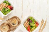 Pudełka na lunch z jedzeniem gotowym do pracy lub szkoły, gotowaniem wstępnym lub dietą. Zdrowa żywność i codzienna koncepcja żywnościowa.