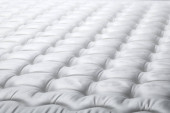 Zbliżenie ujęcia białego materaca ortopedycznego górny boczny wzór powierzchni z dużą ilością miejsca na tekst. Hipoalergiczny materac piankowy dla prawidłowego wyrównania kręgosłupa i odprężenia. Kontekst.