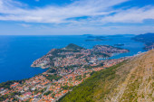 Widok z lotu ptaka na Dubrownik i wyspę Lokrum w Chorwacji