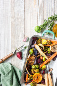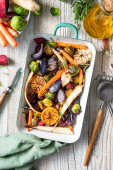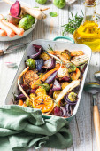 Zdjęcie "Kolorowe grillowane i pieczone warzywa na tacy." może być wykorzystywane do celów osobistych i komercyjnych zgodnie z warunkami zakupionej licencji Royalty-free. Obraz jest dostępny do pobrania w jakości wysokiej rozdzielczości do 5760x3840.