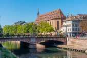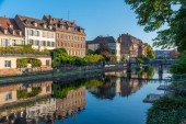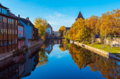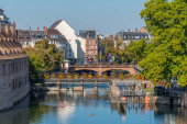 Nabrzeże kanału przechodzącego przez Stare Miasto w Strasburgu, Francja