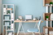 Zdjęcie "Nowoczesne miejsca pracy i półki w biurze" może być wykorzystywane do celów osobistych i komercyjnych zgodnie z warunkami zakupionej licencji Royalty-free. Obraz jest dostępny do pobrania w jakości wysokiej rozdzielczości do 5760x3840.