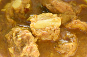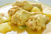mięso wołowe massaman curry z plasterkami ziemniaka i cebuli w misce
